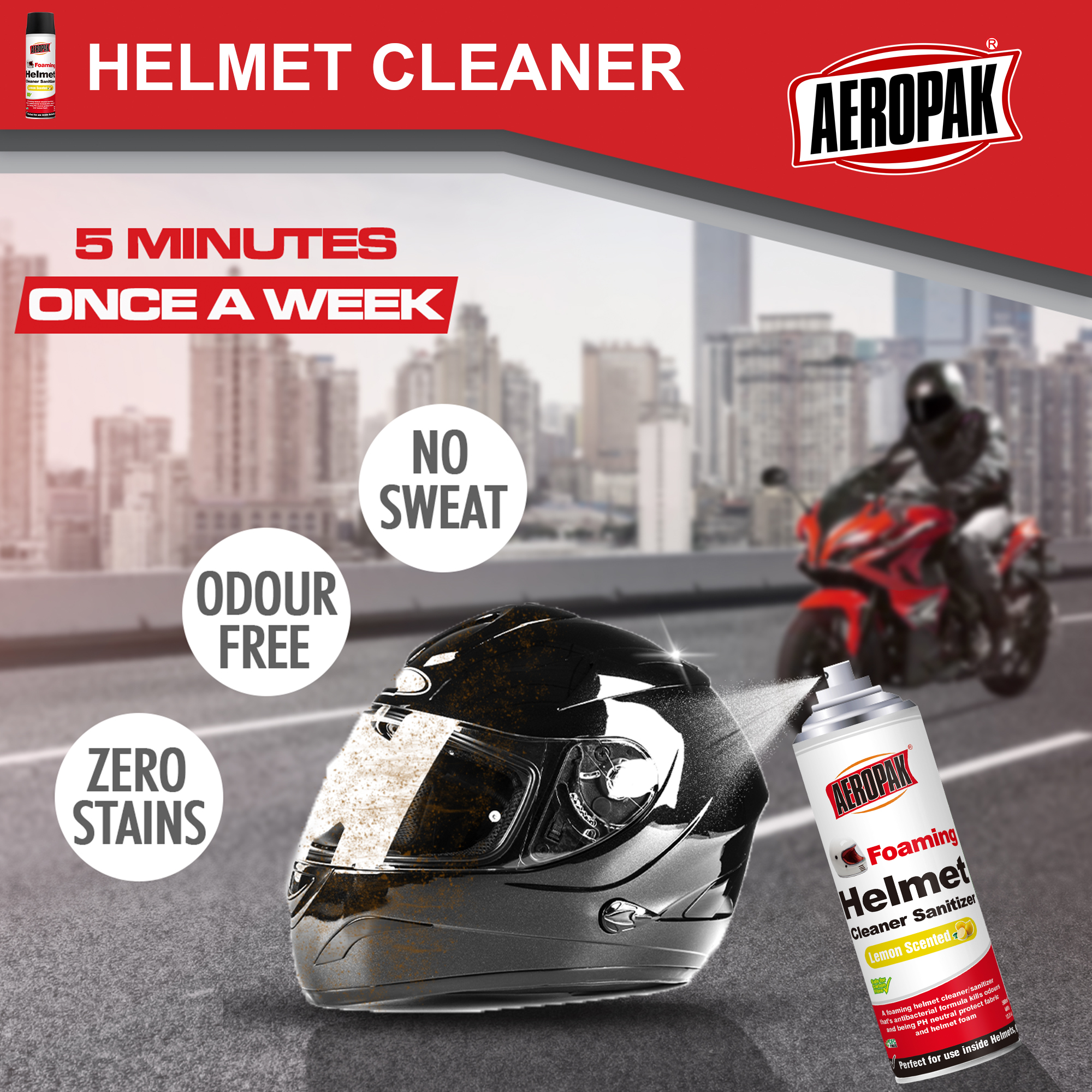 Helmet Cleaner Foam 500ml Automotive Cleaning Products aeropak has a antibacterial formula that kills odours and being PH neutral protects fabric & foam.